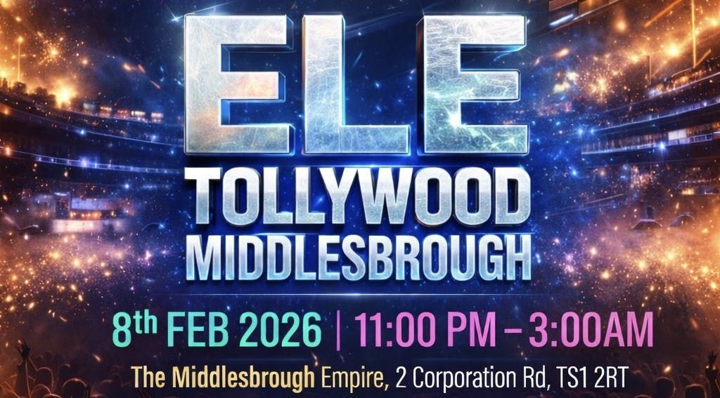 🎧 ELE TOLLYWOOD – MIDDLESBROUGH📅 8th FEB 2026⏰ 11:00 PM – 3:00 AM📍 The Middlesbrough Empire2 Corporation Rd, TS1 2RT