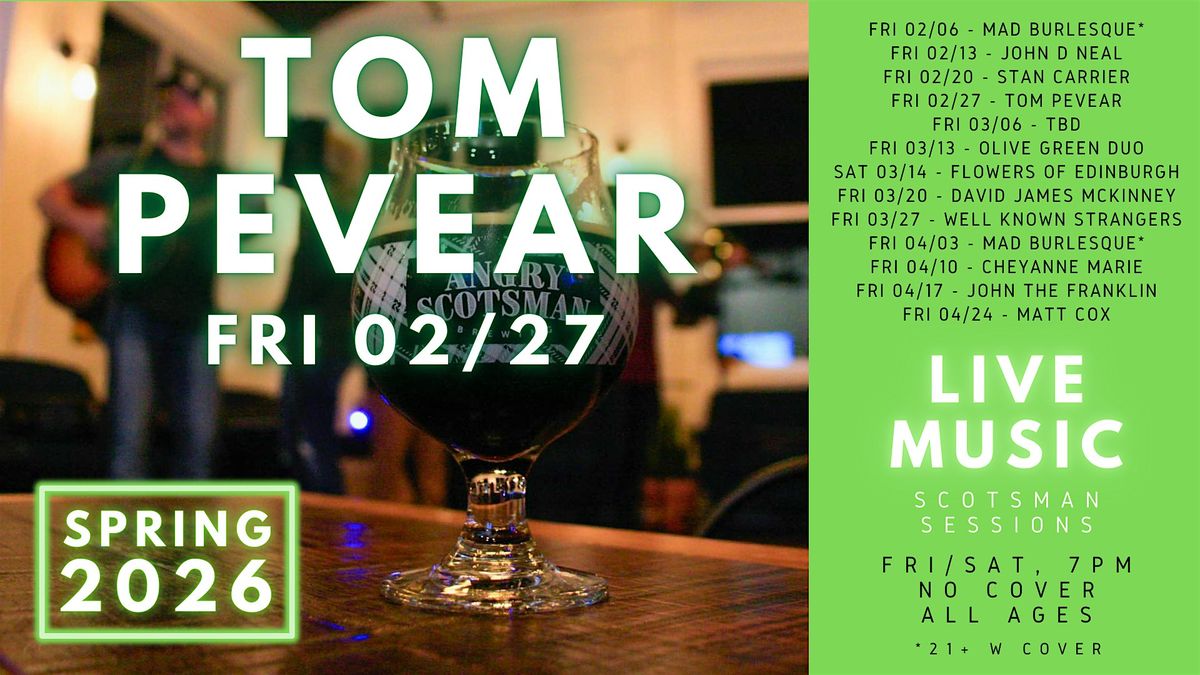 Welcome back Tom Pevear to the ASB stage for another Scotsman Session. Tom is a fingerstyle blues/folk guitar player and singer hailing from Tulsa.