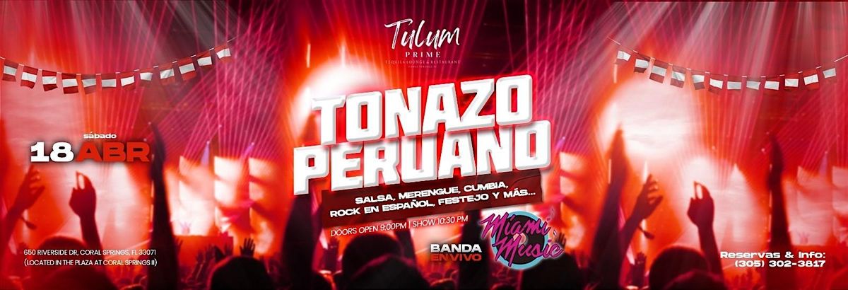 SABADO 18 de ABRIL en TULUM PRIME TEQUILA LOUNGE RESTAURANT de CORAL SPRINGS regresa el TONAZO PERUANO con la banda GRUPO MIAMI MUSIC