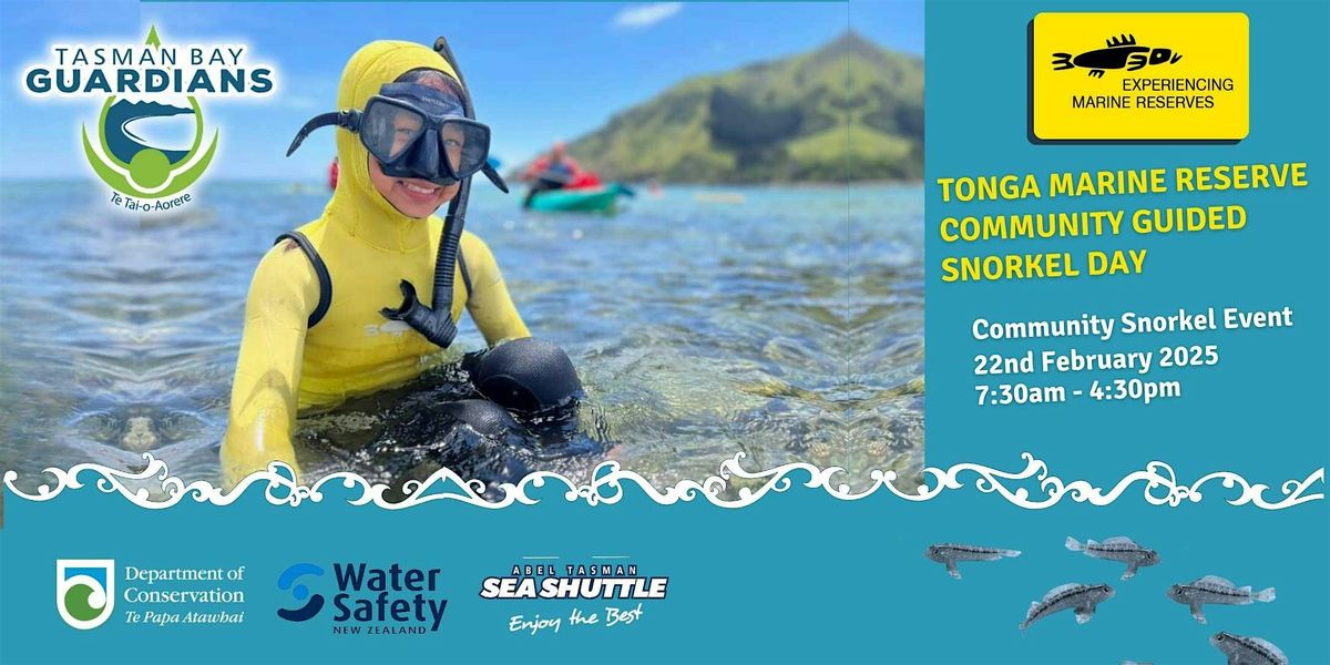 Tasman Bay Guardians (TBG) are hosting an Experiencing Marine Reserves (EMR)community guided snorkel day at Tonga Marine Reserve in the Abel Tasman National park! This is an activity for locals and NZ residents not for tourists*. The snorkelling activity is free of charge. You will need to pay $50 per person for the return boat trip- this is a special subsidised rate Abel Tasman Seashuttle offers us. There will also be a small Eventbrite booking fee.