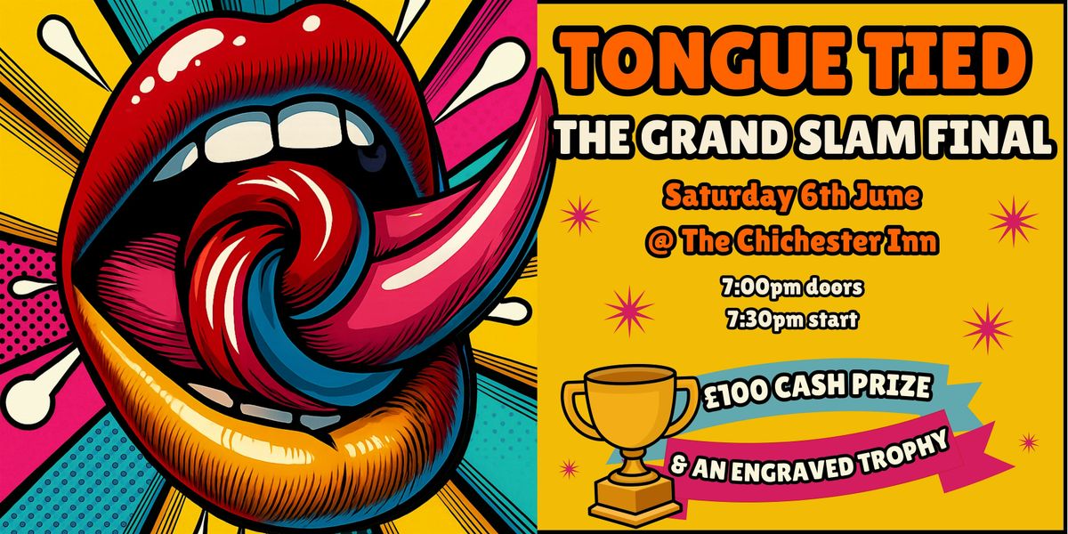 Join us for the Tongue Tied Grand Slam Final! Talented Poets have been battling it out in our monthly heats since September 2025 and now the winners of each heat will bring their words to the mic and only one can be crowned The Tongue Tied Poetry Slam Champion 2026, winning £100 and the engraved Tongue Tied Trophy.