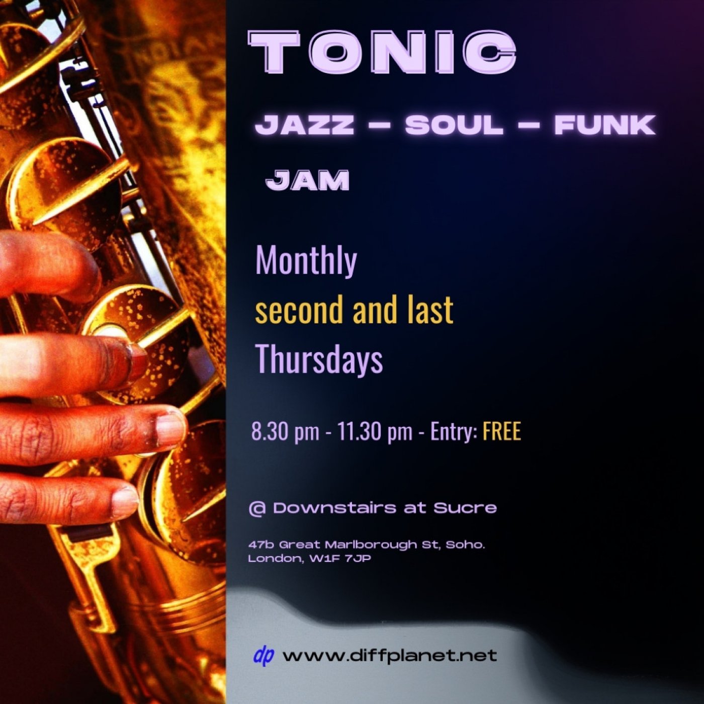 Ignite the senses at ‘Tonic’ for the best in live Jazz Soul and Funk served up by the ‘Jazz - Soul - Funk Collective’ (JSFC).