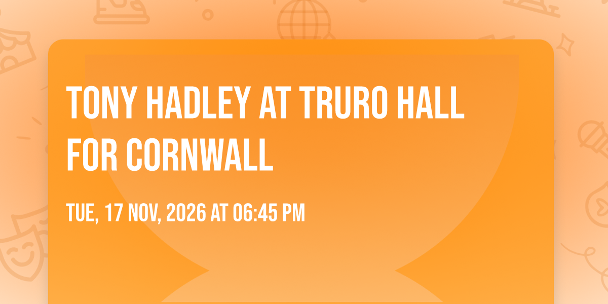 ✨ Embark on an extraordinary journey at Tony Hadley at Truro Hall for Cornwall, where every moment promises to be unforgettable! 🌟 Imagine of transforming Truro Hall for Cornwall in the heart of Truro, EN into a realm of endless possibilities. 📅 Join us on November 17th, 2026 at 06:45 PM for an experience that will challenge your imagination and exceed your expectations. 🎯 This carefully curated event combines the finest elements of entertainment, innovation, and community spirit. Whether you're an adventure seeker, culture enthusiast, or someone looking for unique experiences, this event offers something special for everyone. 🎊 Don't miss this chance to be part of something extraordinary!