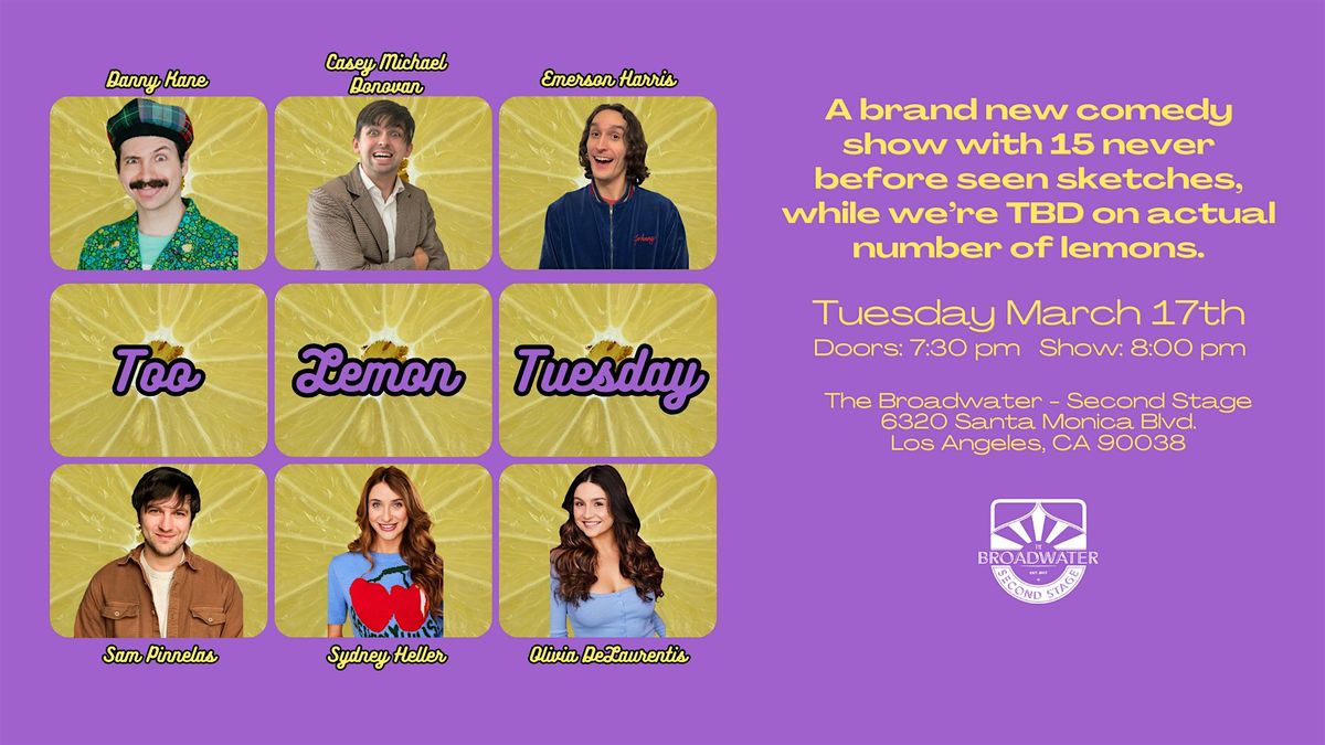 We at Too Lemon are stepping out of the shadows for our first ever live sketch show. We will be showcasing a smorgasbord of pre-taped and staged sketches for your viewing pleasure. We've acquired the talents of Michaela Jill Murphy, Austin Archer, and many more to entertain you onscreen. And we've recruited Sydney Heller and Olivia DeLaurentis (Syd & Olivia) to help us entertain you onstage.