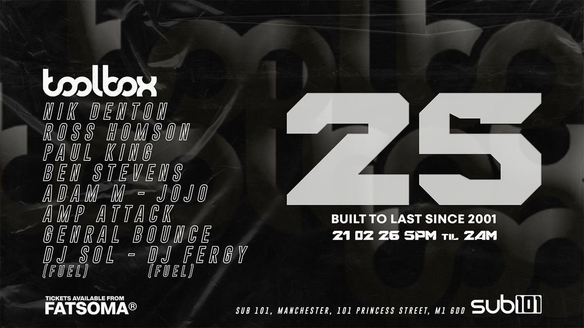 TOOLBOX 25 LIVE party will be on Saturday 21st February - the exact day that marks 25 years of Toolbox. 5pm - 2am