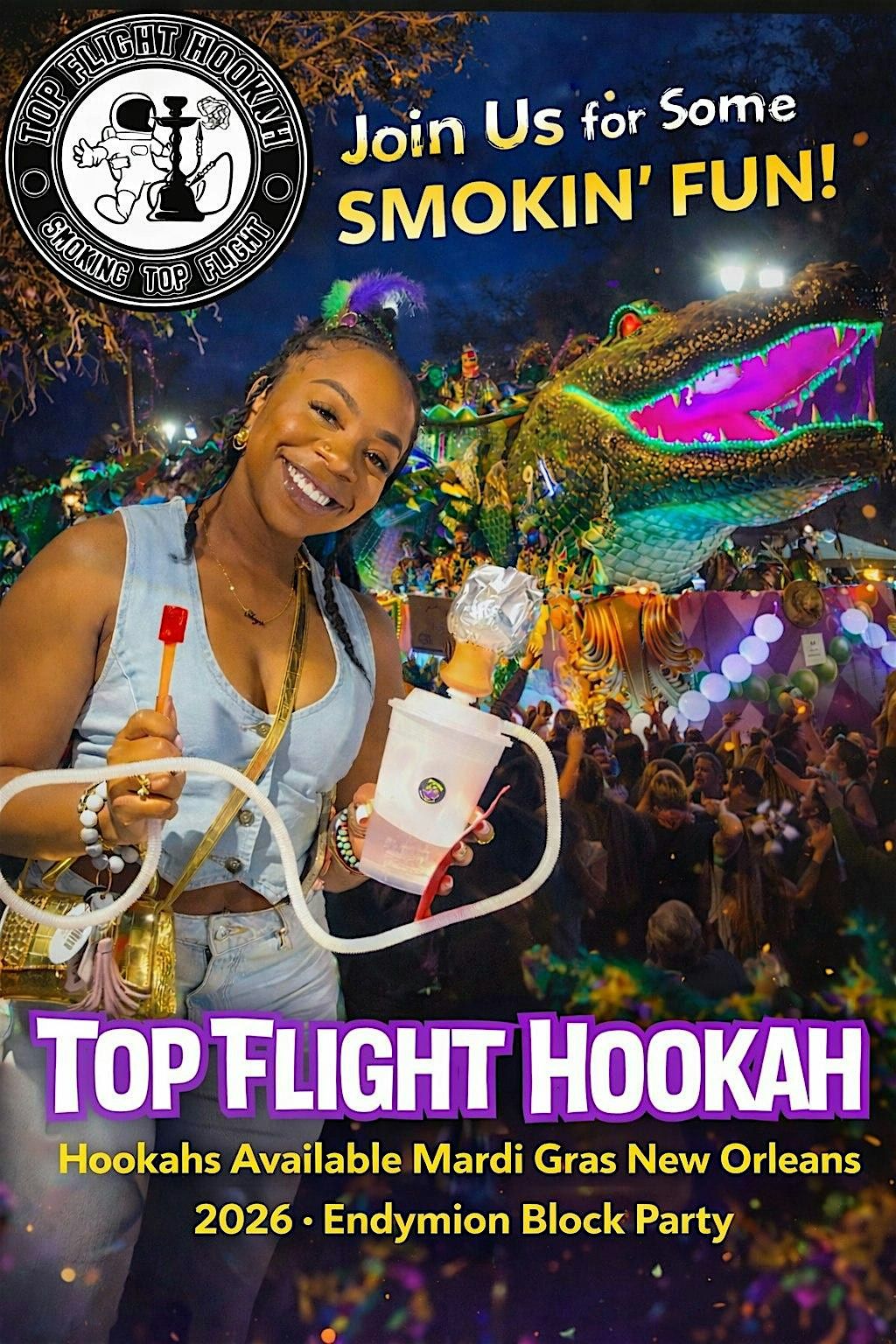 #TopFlightHookah #MardiGras2026 #Endymion #NOLAEvents #HookahLife #MardiGrasVibes #PreBookNow #SmokeInStyle