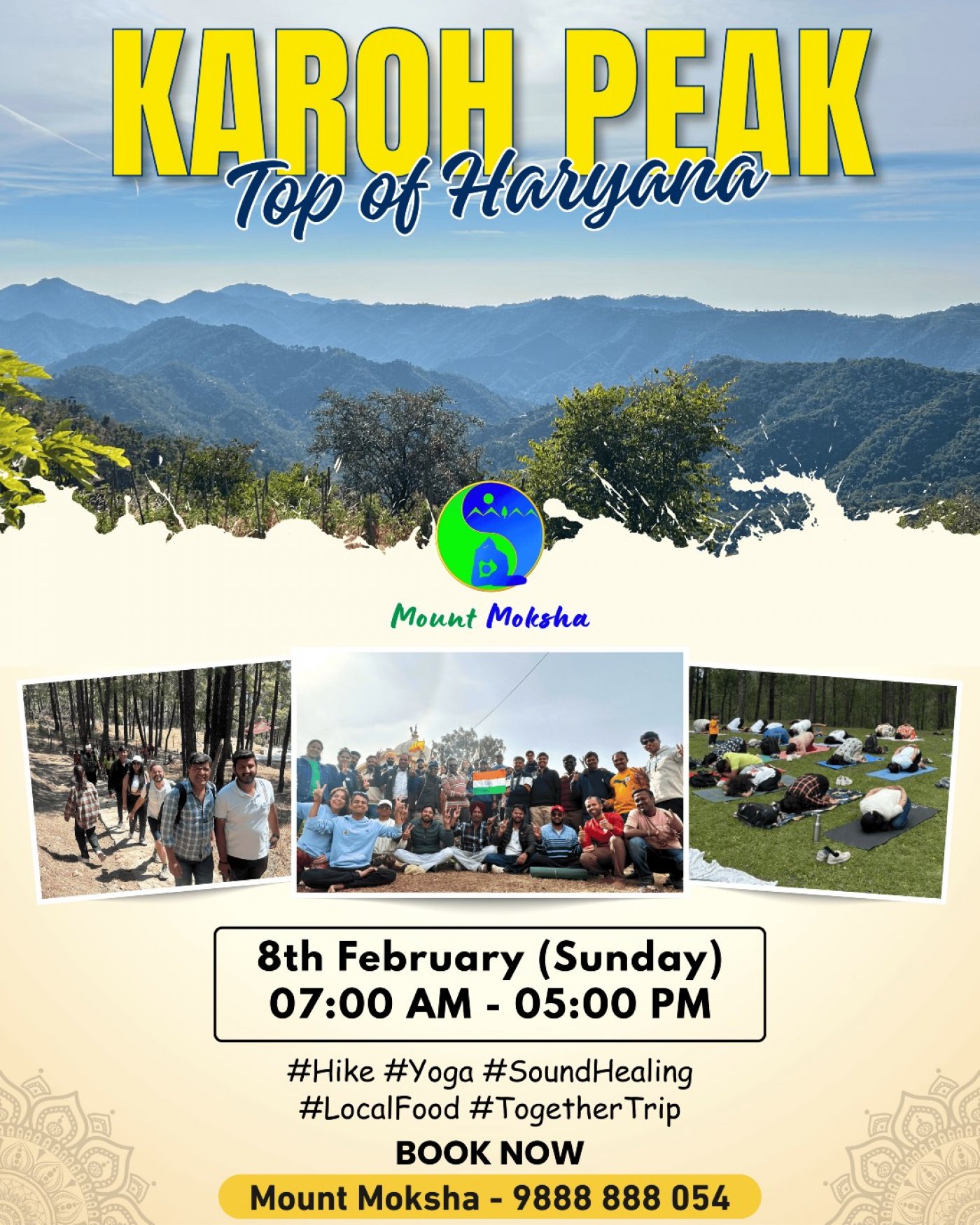 “Karoh Peak is Haryana’s Highest Peak situated at a height of 4813 feet. 3 Temples on the top dedicated to Maa Kali, Karoh Devta & Lord Shiva.”