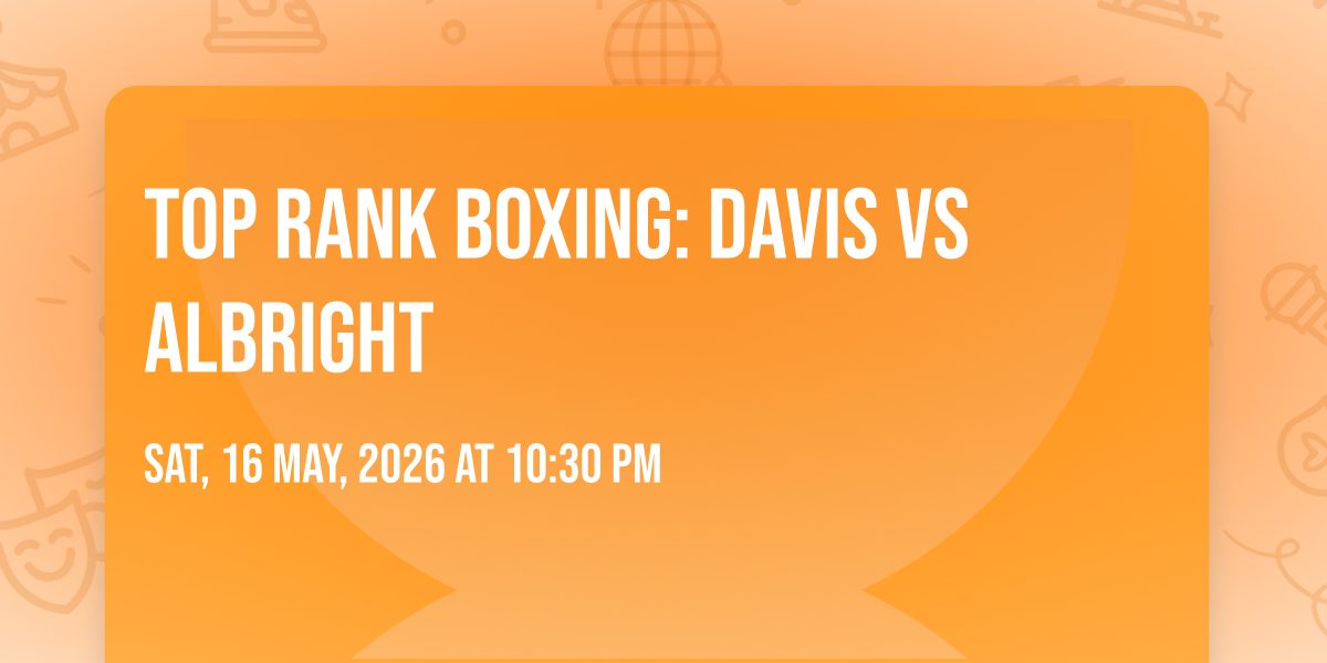 📍 Location: 36.853256, -76.2869✨ Embark on an extraordinary journey at Top Rank Boxing: Davis vs Albright, where every moment promises to be unforgettable! 🌟 Imagine of transforming Scope Arena in the heart of Norfolk, VA into a realm of endless possibilities. 📅 Join us on May 16th, 2026 at 10:30 PM for an experience that will challenge your imagination and exceed your expectations. 🎯 This carefully curated event combines the finest elements of entertainment, innovation, and community spirit. Whether you're an adventure seeker, culture enthusiast, or someone looking for unique experiences, this event offers something special for everyone. 🎊 Don't miss this chance to be part of something extraordinary!