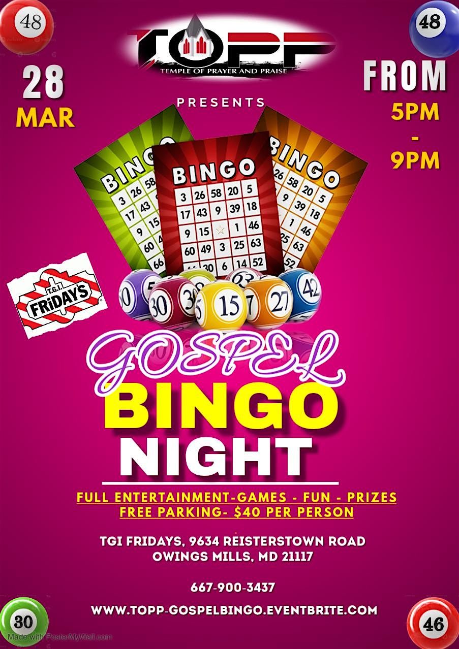 TOPP Gospel Bingo Night is a family oriented fun night with a musical game of bingo. You can win prizes, enjoy food and sing along to songs.