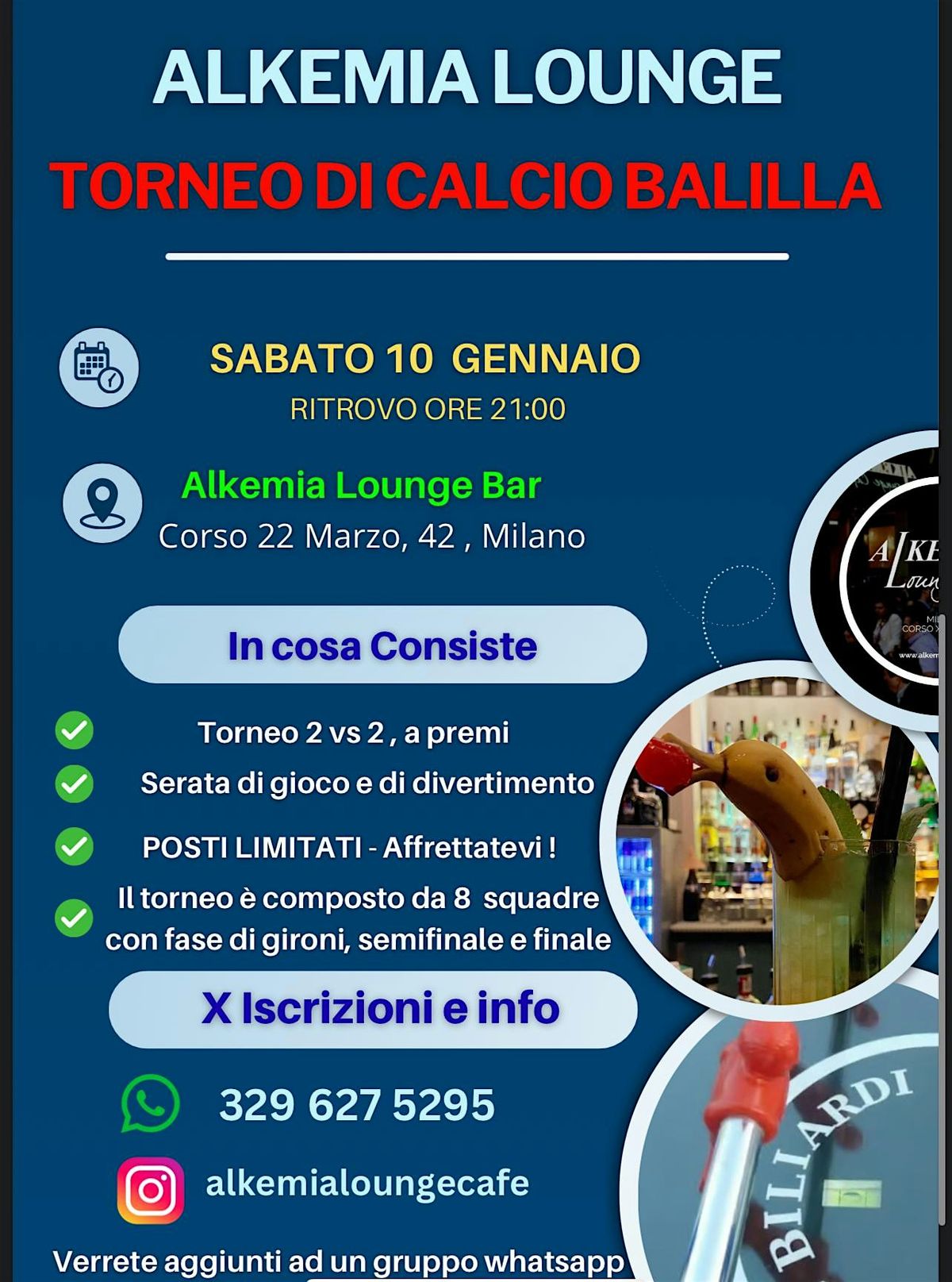 Preparati a una serata di divertimento, competizione e socialità all’Alkemia Lounge Bar di Milano!