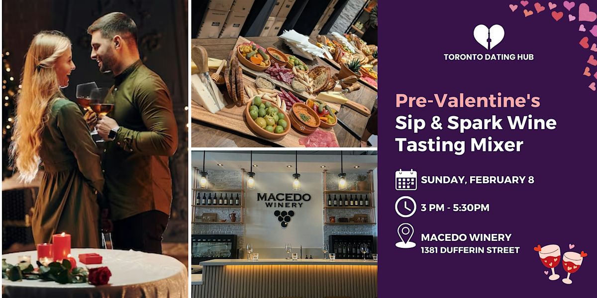 Join Toronto Dating Hub for a refined, pre-Valentine’s wine tasting mixer at Macedo Winery, a family-owned hidden gem known for its warm atmosphere and exceptional wines.