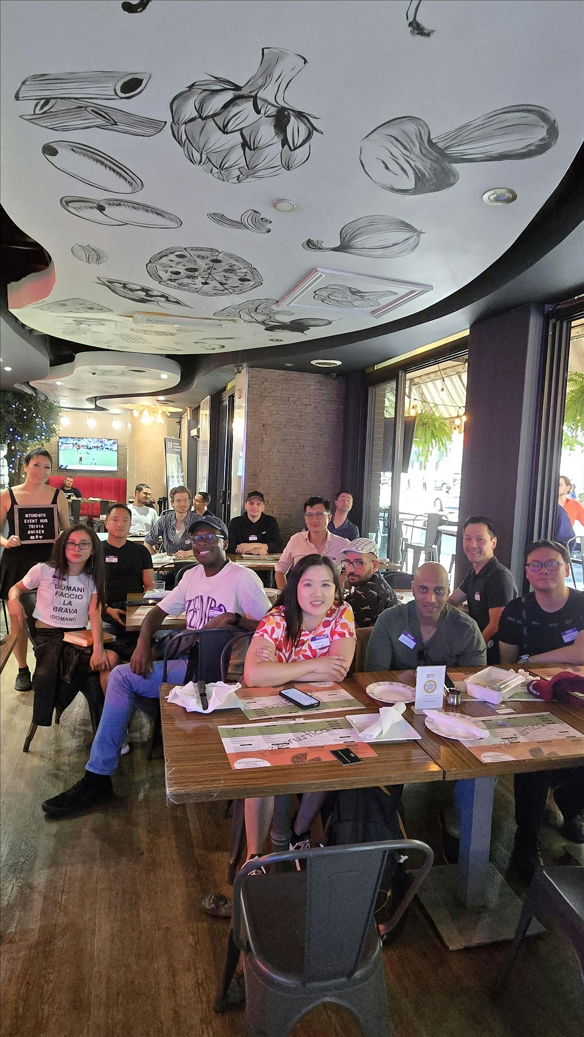 Come to our social to make new friends and play live trivia (to win prizes!)! You can order food & drinks on site - Pizza Rustica has a great and affordable selection!