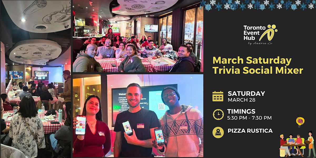 We are the monthly trivia host at Pizza Rustica twice a month - this one will be on a Saturday early evening- and you'll be freed up to join other events/festivities in the King West neighbourhood. The first 20 spots are FREE (as long as you make at least one $10 food or drink order). Please do not take up a spot if you cannot make it.