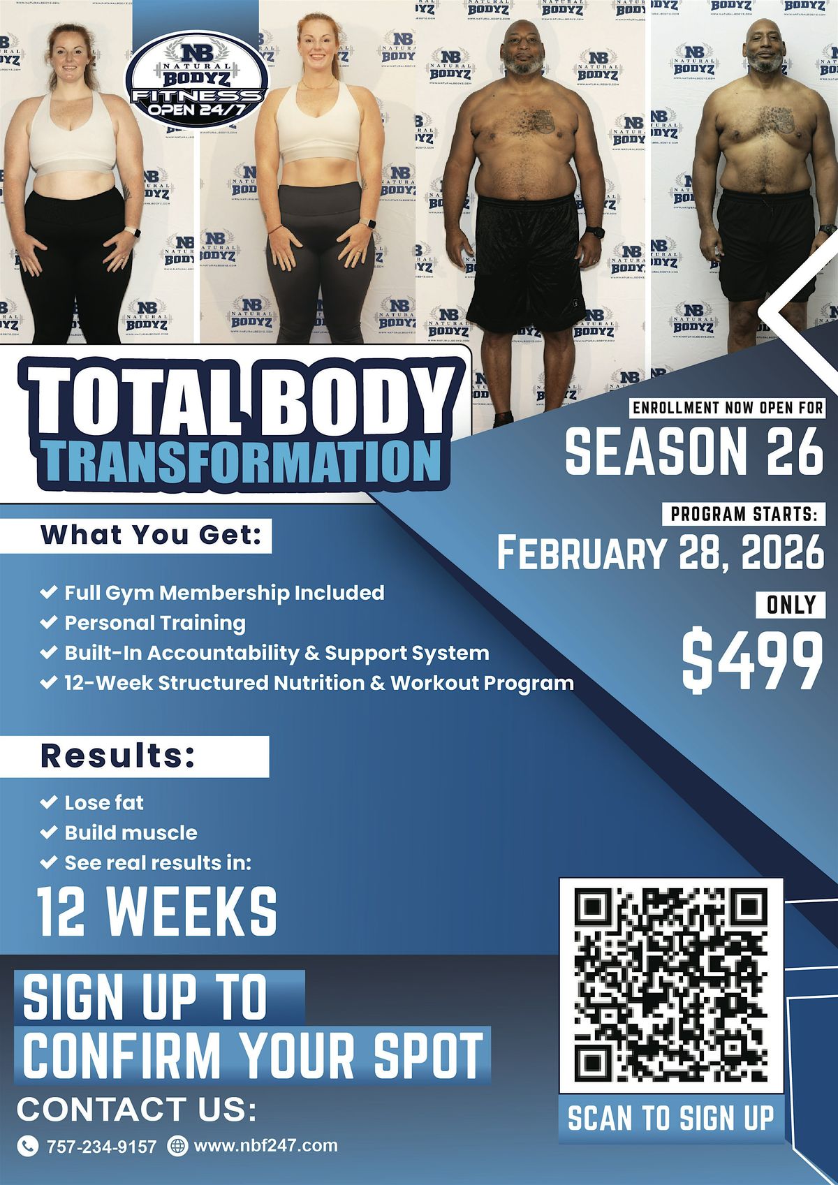 The TBT teaches participants how to strategically lose body fat and gain lean muscle mass over a 12 week, 3 phase diet and training program. The TBT is a weight loss challenge, offering prizes to contestants for the best results in that given time frame.