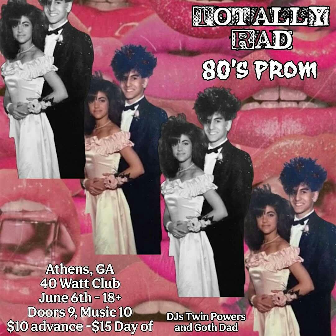 "Get your hair done big, put on some spandex and break out the electric blue eyeshadow - it's time for 80's Prom! DJs Twin Powers and Goth Dad will take you back to a time of cold war but hot tunes. From New Order to Run DMC, you'll dance non-stop to new wave, hip-hop, post-punk, pop and more. Be there, or be square, nerds."