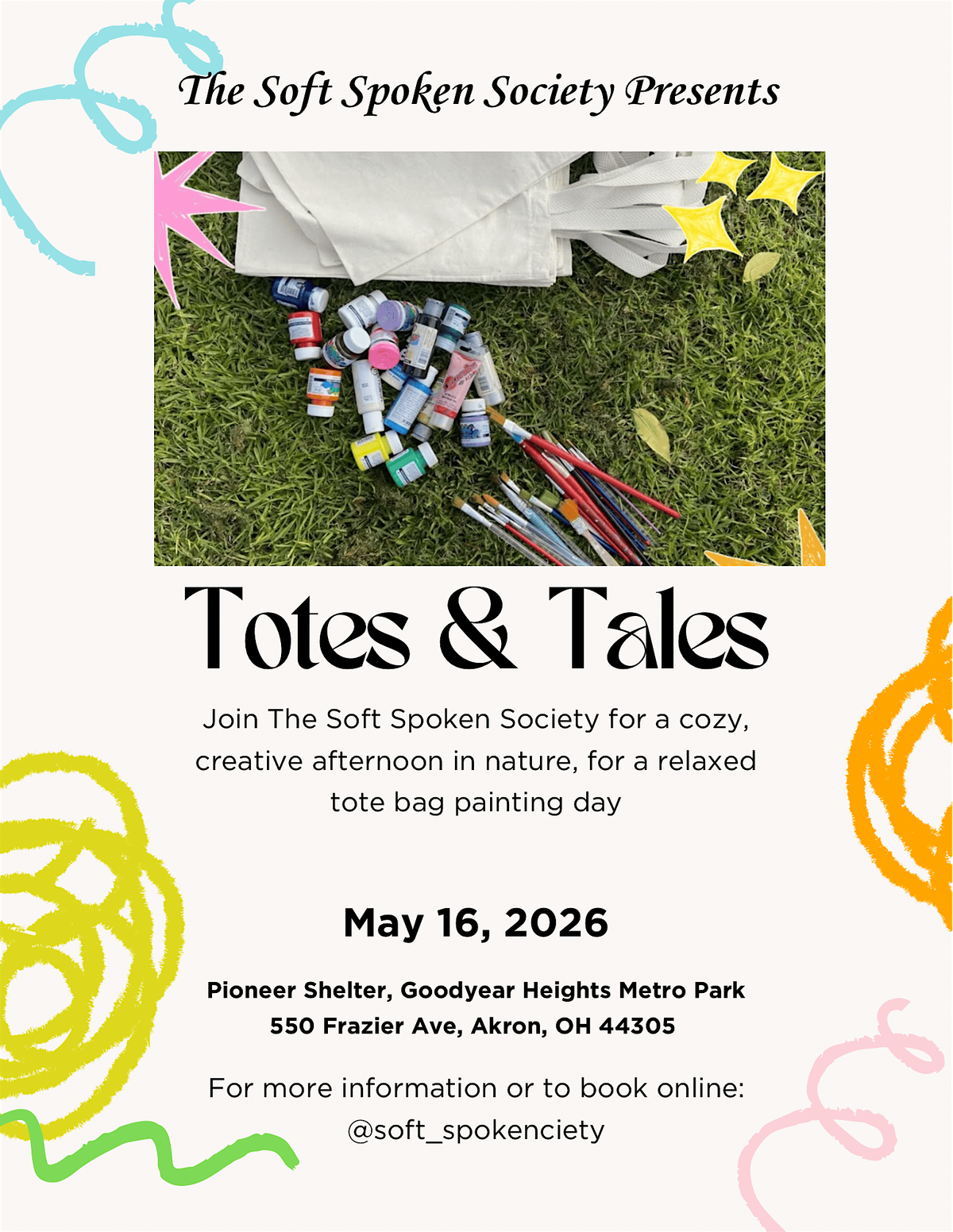 We’re gathering at the Goodyear Metro Park pavilion for a relaxed tote bag painting day—where art, conversation, and community meet. Whether you’re an avid reader, a casual creative, or just looking to meet new people, this is your space to unwind and create something uniquely yours.