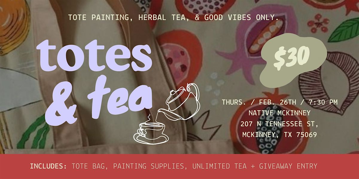 Take a break from the grind and treat yourself to an evening of rest and creativity. Paint your own custom tote, sip on unlimited calming herbal tea, and connect with others who know the value of a little midweek self‑care.