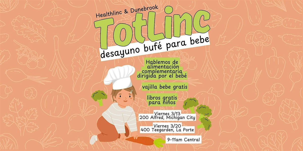 We put out all kinds of things and give our littles the space, freedom, and confidence to explore and learn through play— while we bond with them and each other!We’ve got a little topic or theme every month, but this isn’t a structured class or anything. Just drop in with your kiddos! We’ll have snacks and a free book for every child!March TotLinc is Baby Buffet!Let's share a meal and talk about introducing solids to baby! All families are welcome!