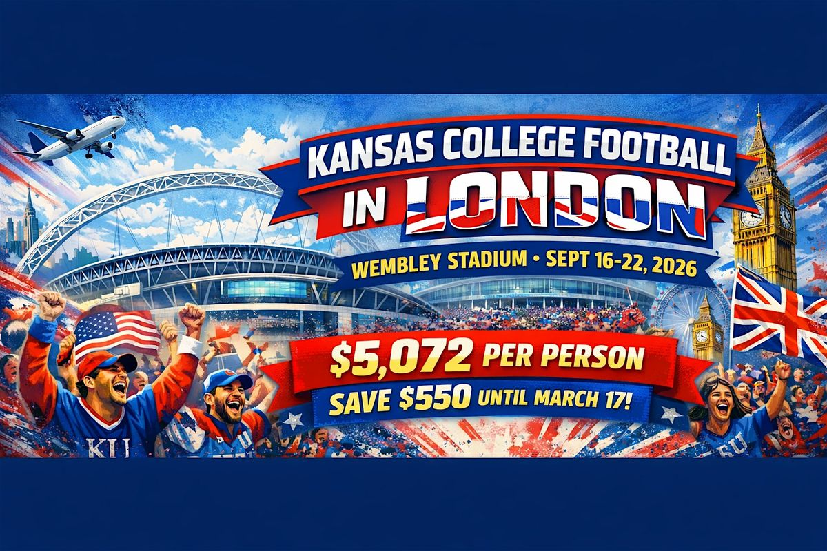 Join us for an exciting presentation on a unique travel opportunity! AAA Member Choice Vacations will guide you through their expertly crafted Spotlight on London tour, taking place September 16–22, 2026. This immersive journey explores London’s iconic sights—and coincides with the University of Kansas football team’s game in the UK. While game tickets are not included, round‑trip transportation to and from Wembley Stadium is provided for tour guests. To reserve your spot, click the RSVP Today or call 785-830-6371. This event is being held at KU Memorial Union - Alderson Classroom, 1301 Jayhawk Blvd.