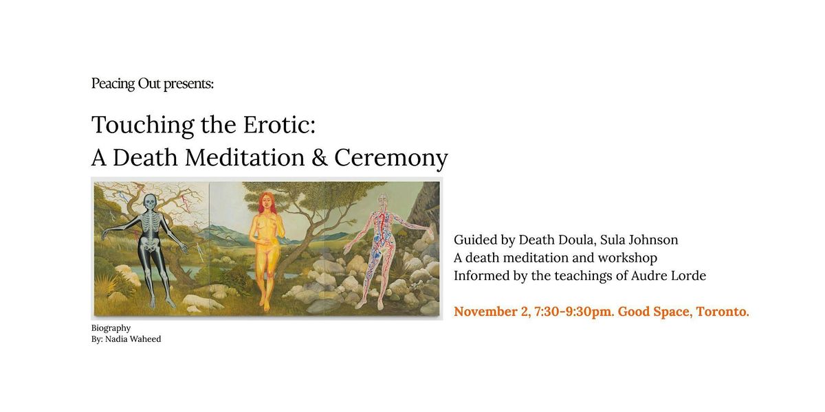This offering is grounded in Buddhist death practices (maraṇasati, or mindfulness of death) and the revolutionary teachings of Audre Lorde, who reminds us of the power of the erotic—not just as sexual, but as a deep well of feeling, joy, and aliveness.