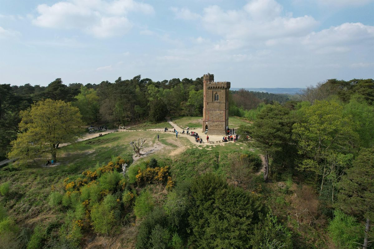 Starting from Holmwood, our route climbs first to Leith Hill (294m), the highest point in the South East of England. Here the summit is crowned by the 18th-century gothic Leith Hill Tower, offering some of the most far-reaching views of any of our hikes — south to the sea and the South Downs, and north as far as central London landmarks on a clear day.