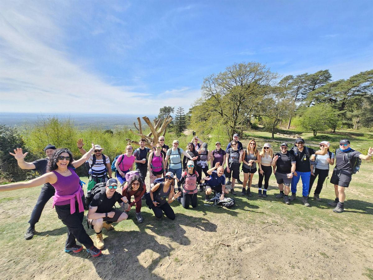 This is Outdooraholics’ toughest day hike from London — a formidable challenge often called the Yorkshire cousins as it rivals the Yorkshire Three Peaks in length and ascent. We take on the three highest points in Surrey: Box Hill, Holmbury Hill and Leith Hill, following ancient sandy trails and woodland ridges across the Surrey Hills Area of Outstanding Natural Beauty. Surrey is the most wooded county in England, and this route showcases its very best trails.