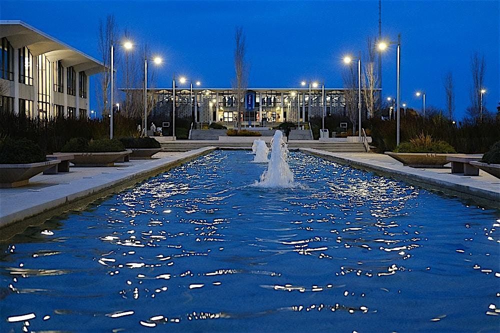 On the tour, you’ll move through the campus and experience its disciplined structural rhythm, folded-plate roof forms, deep overhangs, and colonnaded walkways that link the buildings into a cohesive whole. You’ll encounter the memorable Library—widely regarded as a distinguished West Coast expression of New Formalism—and consider it alongside other landmark works of the movement.