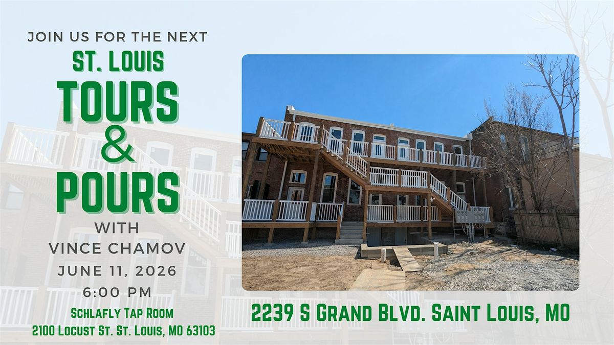 The property tour “TOURS” will happen at 2239 South Grand at 2239 S Grand Blvd. Saint Louis, MO, at 6:00 pm, so come early for pre-tour networking.