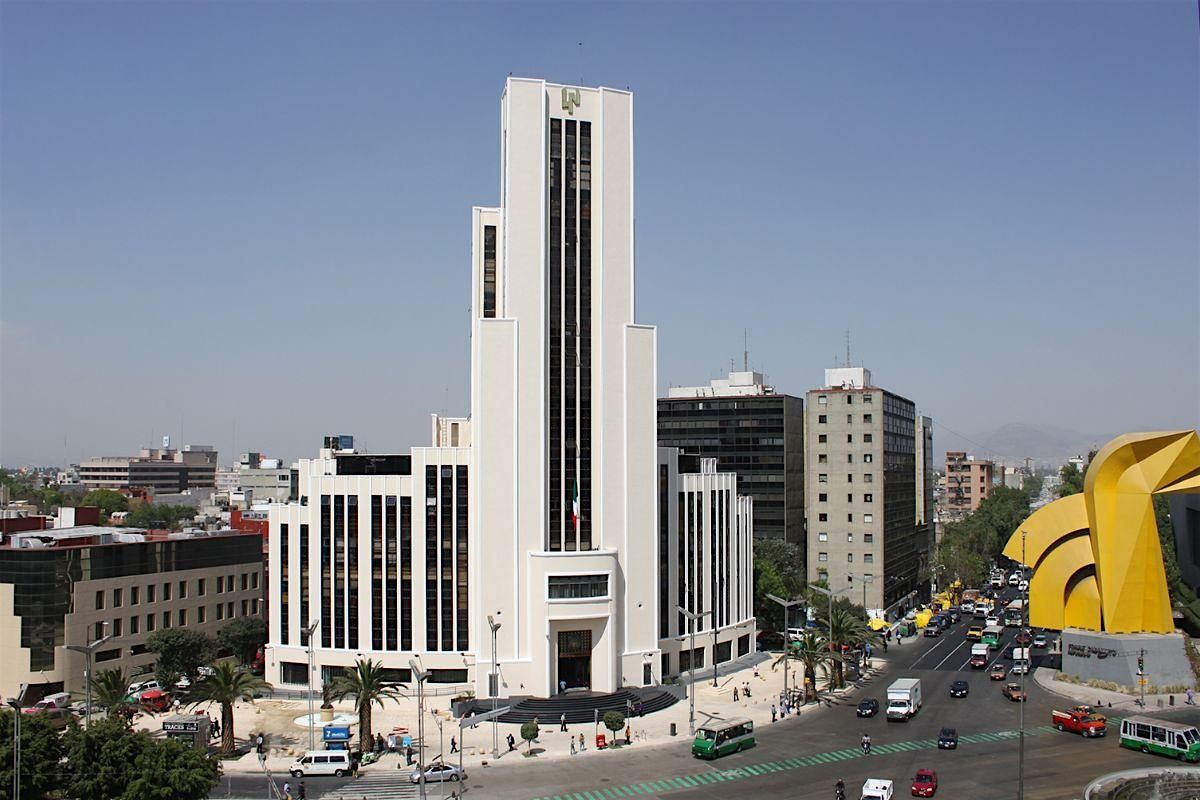 This tour examines two landmarks that reflect the architectural and political transformations of Mexico City in the first half of the twentieth century. The first stop is the Edificio de la Lotería Nacional (National Lottery Building), known as El Moro. Construction began in 1933 but faced major engineering challenges due to the site’s waterlogged subsoil. Completed in 1946, it was briefly the tallest building in the city and became notable for its Art Deco design and for being the first building in Mexico to feature an electric neon sign. The second stop is the Monumento a la Revolución (Monument to the Mexican Revolution). Originally conceived as a legislative palace under Porfirio Díaz, the unfinished structure was transformed in the 1930s by architect Carlos Obregón Santacilia into a memorial. Combining Art Deco with Socialist Realism, it houses a mausoleum for key figures of the Revolution.
