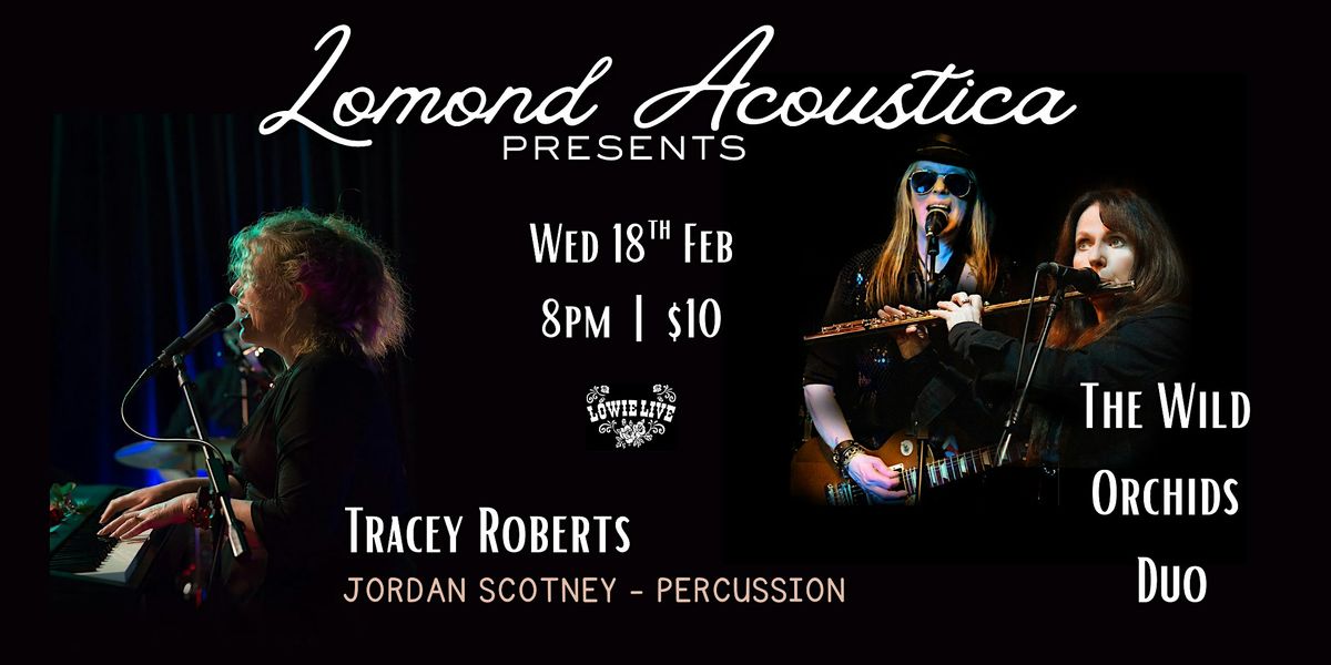 Tracey Roberts is one of Melbourne's most versatile singer-songwriter-pianists, often performing at concerts and festivals, and is a regular performer at Lomond Acoustica. She combines colourful, image-laden songs and melodic, jazz-infused piano arrangements with a dynamic and spellbinding vocal delivery, ably accompanied by the expressive percussionist Jordan Scotney.