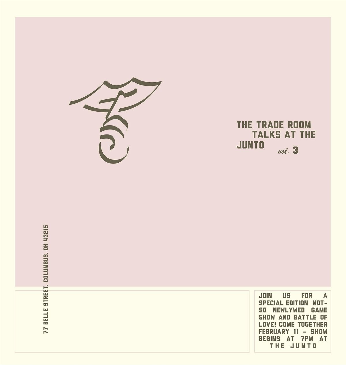 Come together for our next Trade Room Talk! Love is in the air, and we are excited to present this Valentine's Special, a not-so-Newlywed take on life, love, and relationships! We will be interviewing 4 of Columbus' favorite couples on the ins, outs and upside downs of their relationships for their chance to win a weekend staycay and date night at The Junto! Stay tuned to find out who our couples are!