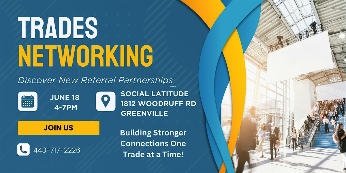 Welcome to our Trades Networking Event! It's a unique opportunity for skilled tradespeople to come together and establish referral partnerships. Picture a gathering where electricians, plumbers, carpenters, and other artisans gather to synergize their expertise, exchange industry insights, and foster collaborative endeavors. Whether you're seeking to expand your business horizons, cultivate reliable subcontractor relationships, or engage in knowledge sharing, this event offers a ground for professional growth and mutual prosperity within the trades community. Join us and tap into a wealth of opportunities for strategic networking and collective advancement.