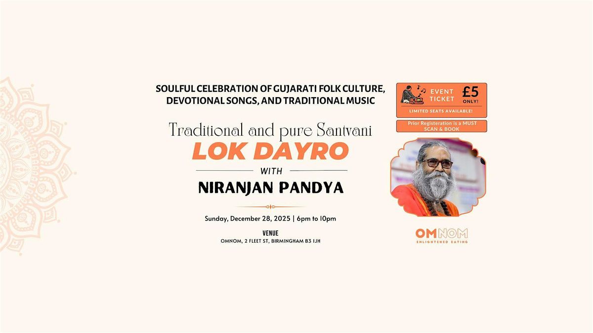 Join us for an enchanting evening celebrating the soul of Gujarat through its rich folk traditions, devotional music, and vibrant culture. This event will feature the renowned Gujarati folk singer, Niranjan Pandya, affectionately known as "Bapu," whose heartfelt performances of traditional devotional and folk songs will transport you to the spiritual and cultural heart of Gujarat.