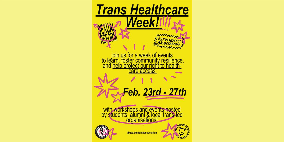 At this workshop as part of our Trans Healthcare Week programme, you'll learn about DIY HRT. It's a free session in the GSA Students' Association's Project Space 2 (top floor).