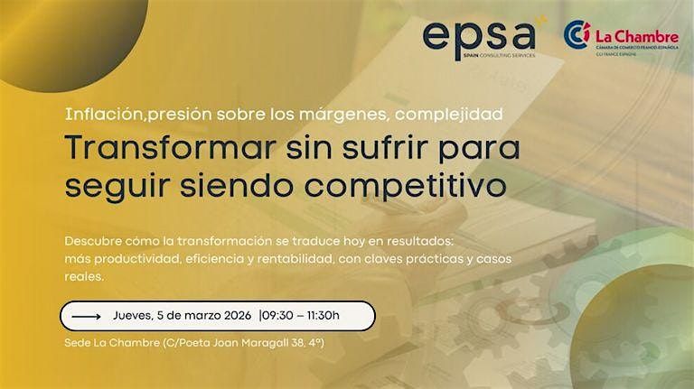 Desde la Cámara de Comercio Franco-Española, en colaboración con nuestro socio Epsa, te invitamos a este evento en el que abordaremos cómo convertir la transformación en resultados tangibles: más productividad, más eficiencia y mayor rentabilidad.