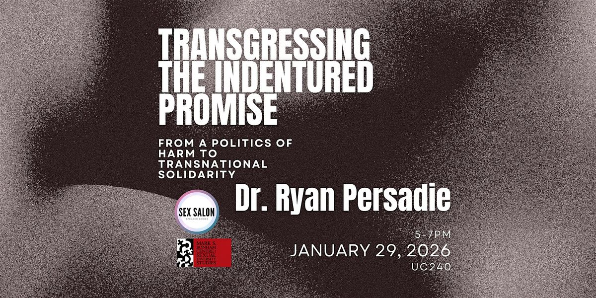 The Sex Salon is a monthly speakers series organized and hosted by graduate students from the Mark S. Bonham Centre for Sexual Diversity Studies, and typically meets on the last Thursday of every month from 5:00 - 7:00 PM EST.