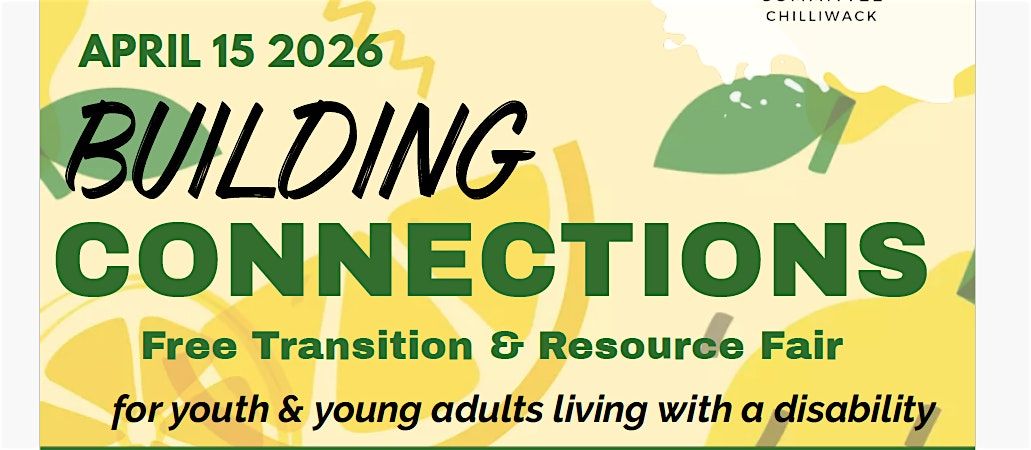 Join us at Building A at the UFV Chilliwack Campus from 4-6:30 for the Building Connections Fair. Chilliwack based organizations will have information booths to answer questions about work options, college courses, community programs and events. Prizes will be drawn every hour. This is a chance for families and young adults to learn more about the options available and to network with organization and other families. Light refreshments will be provided. Registration is not required but recommended!