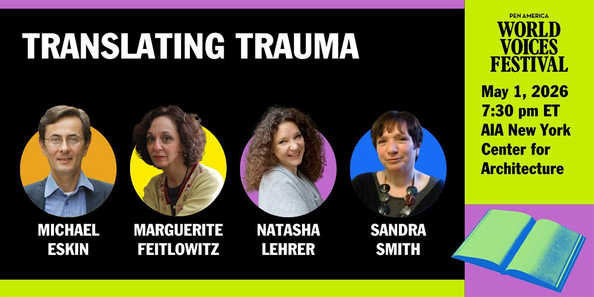In this discussion, hear from three acclaimed translators: Marguerite Feitlowitz (Information for Foreigners: Three Plays by Griselda Gambaro), Natasha Lehrer (A Hymn to Life by Gisèle Pelicot), and Sandra Smith (But You Did Not Come Back by Marceline Loridan-Ivens), as they discuss the emotional toll of translating works that confront trauma and historical violence. Moderated by translator and author Michael Eskin (The Emprise of Poetry: Durs Grünbein, America, Antisemitism and the Pursuit of Liberty), this conversation will explore both the personal costs to the translator and the necessity of bringing these works across languages.