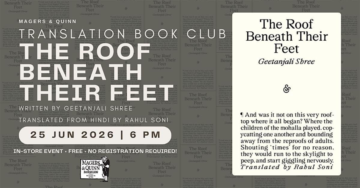 This month, we'll be discussing Geetanjali Shree's The Roof Beneath Their Feet, translated from Hindi by Rahul Soni!