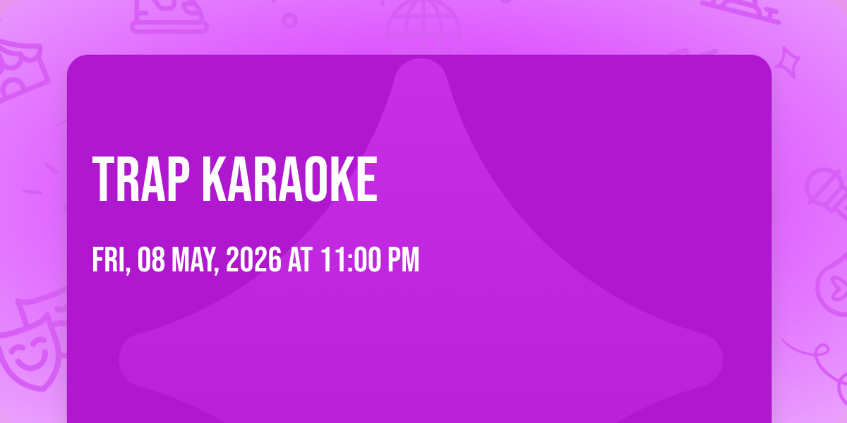 📍 Location: 39.2904, -76.6123🎉 Welcome to Trap Karaoke, where dreams come alive and possibilities are endless! 🏛️ Join us at Nevermore Hall in the heart of Baltimore, MD for an event that defies expectations. 📅 On May 8th, 2026 at 11:00 PM, be part of something truly extraordinary as we bring together innovation, entertainment, and pure magic. ✨ Every aspect has been carefully designed to ensure an unforgettable experience for all our guests. Whether you're seeking adventure, inspiration, or simply a break from the ordinary, this event promises to deliver beyond your wildest dreams. 🎊 Prepare for a journey into the extraordinary!