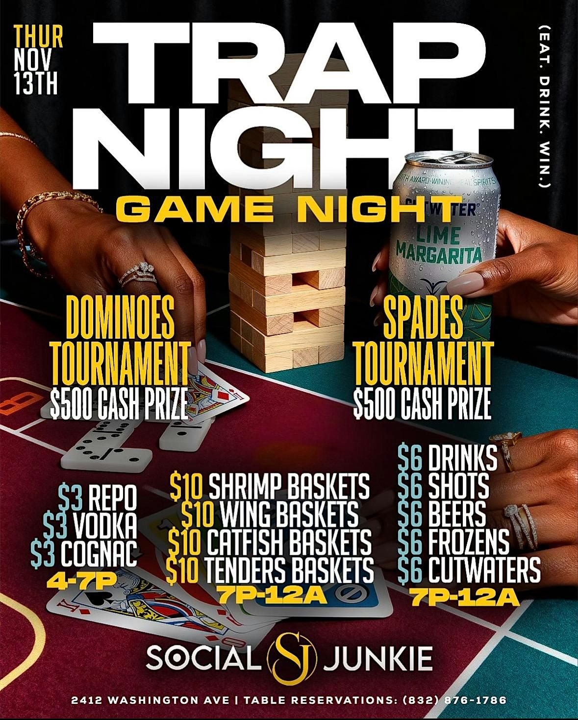 TRAP STAR THURSDAYS GAME NIGHT AT SOCIAL JUNKIE