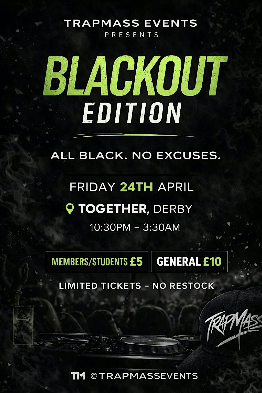 TrapMass Events presents BLACKOUT EDITION Dress code is STRICTLY ALL BLACK.If you’re not in black… you’re not part of the night.