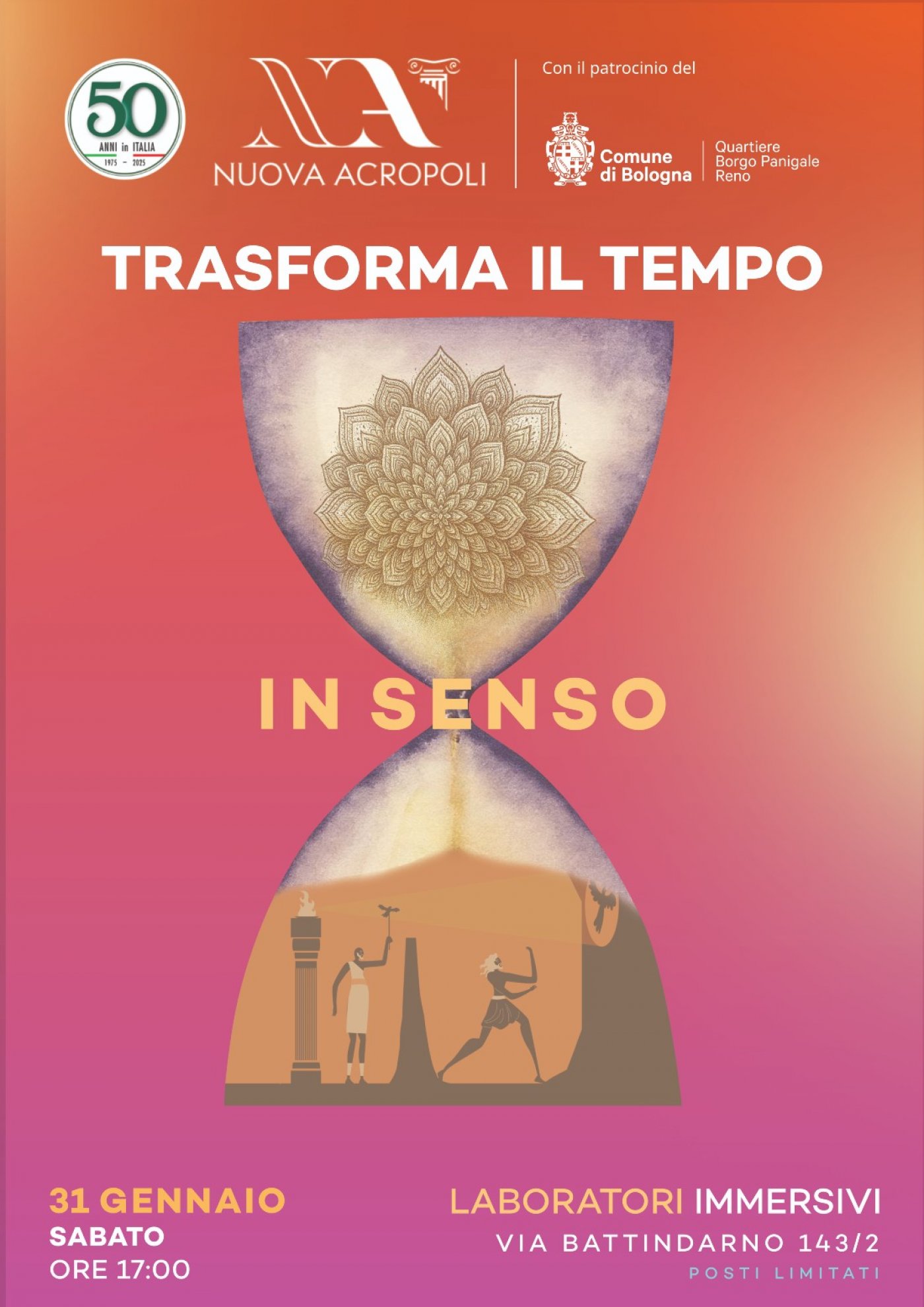 Con il patrocinio del Quartiere Borgo Panigale - Reno, Nuova Acropoli Bologna invita la cittadinanza a un pomeriggio di laboratori immersivi, di ispirazione sia orientale che occidentale, sul tema del tempo.