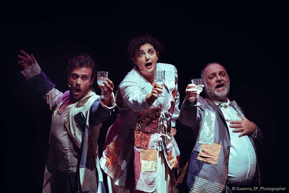 In an undefined time and place, three actors decide to perform La Traviata—just the three of them. They have no doubts: the undertaking is worth it, because what matters is the evocative power of theatre. They have no imposing sets, no elaborate costumes, no opera singers, but they do have a story to tell. Stripped of its intrinsic opulence, what remains of the melodrama is the story of Violetta and Alfredo and the famous arias that have made it immortal. Why La Traviata? Because it is the most performed opera in the world and is iconic, decadent, and deeply moving. The text is a pretext, and the loneliness of the three characters is not a limit but the only true reality: in theatre, anything is possible.