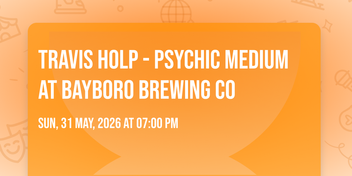 ✨ Discover the extraordinary at Travis Holp - Psychic Medium at Bayboro Brewing Co, where magic meets reality in ways you've never imagined! 🏛️ Set in Bayboro Brewing Co nestled in bustling St. Petersburg, FL, this event promises to be a landmark occasion. 📅 Taking place on May 31st, 2026 at 07:00 PM, it's going to create an atmosphere where every moment becomes a cherished memory. 🌟 Immerse yourself in an experience crafted with attention to every detail, designed to surprise and delight at every turn. They have worked tirelessly to ensure this event exceeds all expectations, bringing together elements of entertainment, innovation, and pure joy. 🎊 Don't miss your chance to be part of this remarkable journey!