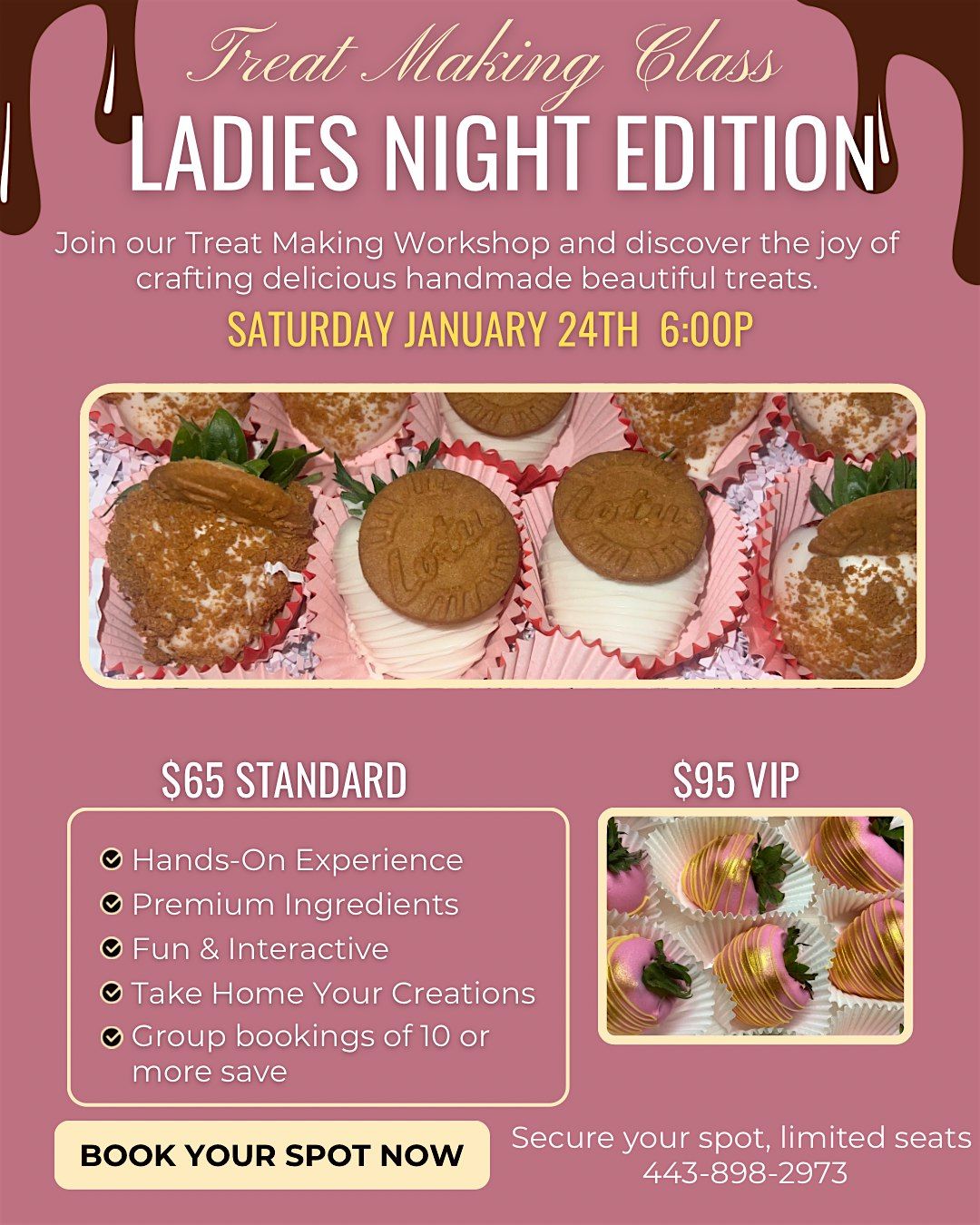 Get ready for a fun in-person night with your besties! Join our Treat Making Class and whip up some delicious goodies together. It’s the perfect way to unwind, laugh, and make sweet memories. No experience needed—just bring your good vibes and appetite for fun!