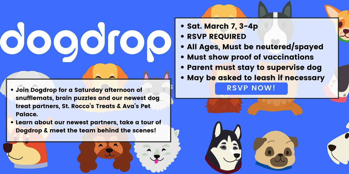 All attendees must comply with Dogdrop safety guidelines, including proof of up-to-date vaccinations and spay/neuter status.