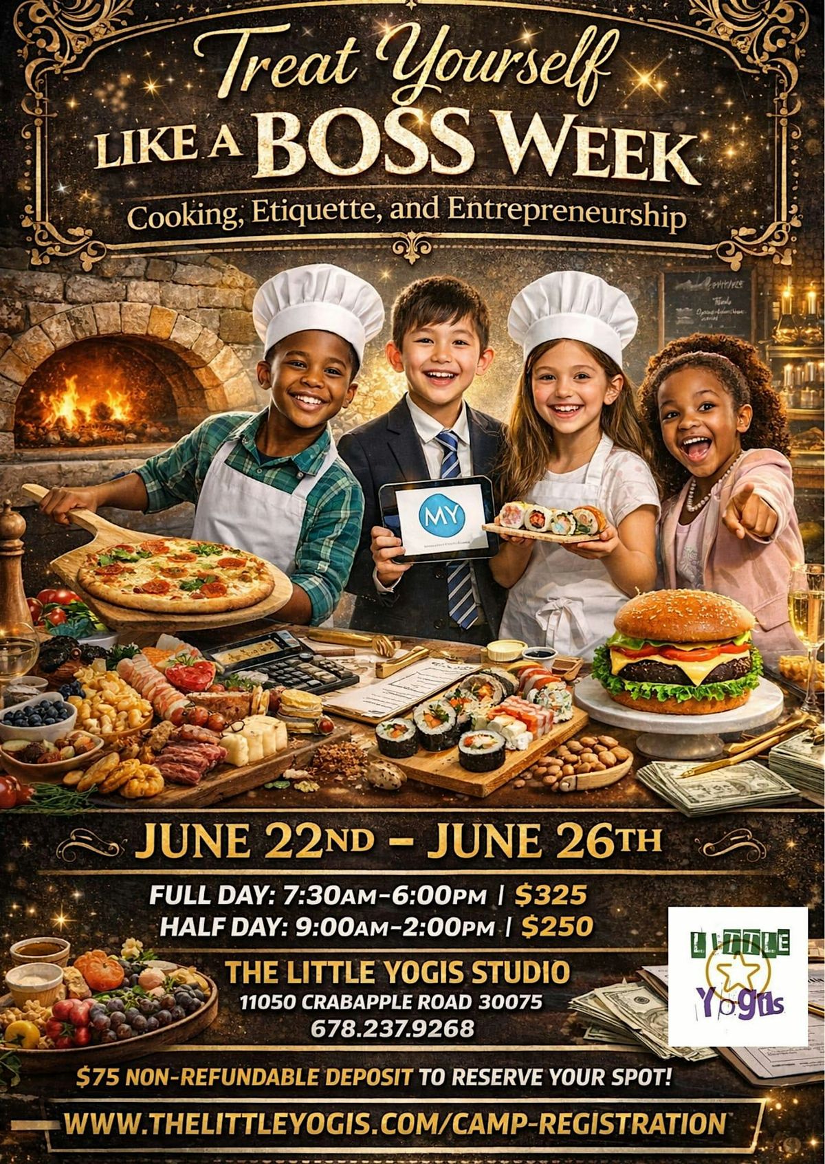 Ready to level up? Join us for the Treat Yourself like a Boss Camp — a fun, in-person experience all about cooking, etiquette, and entrepreneurship! Whether you're a kitchen newbie or boss mode is your middle name, we've got you covered. Learn tasty recipes, master smooth social skills, and pick up biz tips that'll have you running the show. Come hang out, get inspired, and treat yourself like the true boss you are!