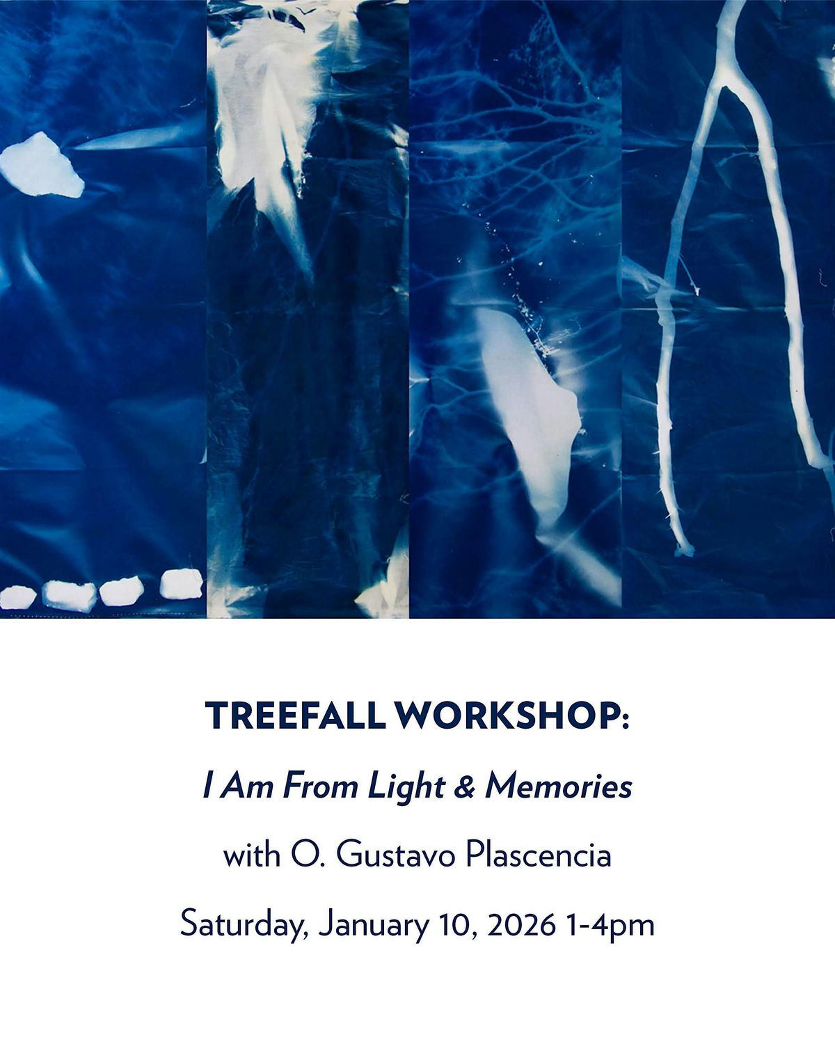 The writing portion transitions into hands-on image-making through lumen prints and cyanotypes. Participants work with found objects, natural materials, and sunlight to produce camera-less photographs that translate written ideas into visual form. Emphasis is placed on process, material experimentation, and the relationship between light, time, and environment.