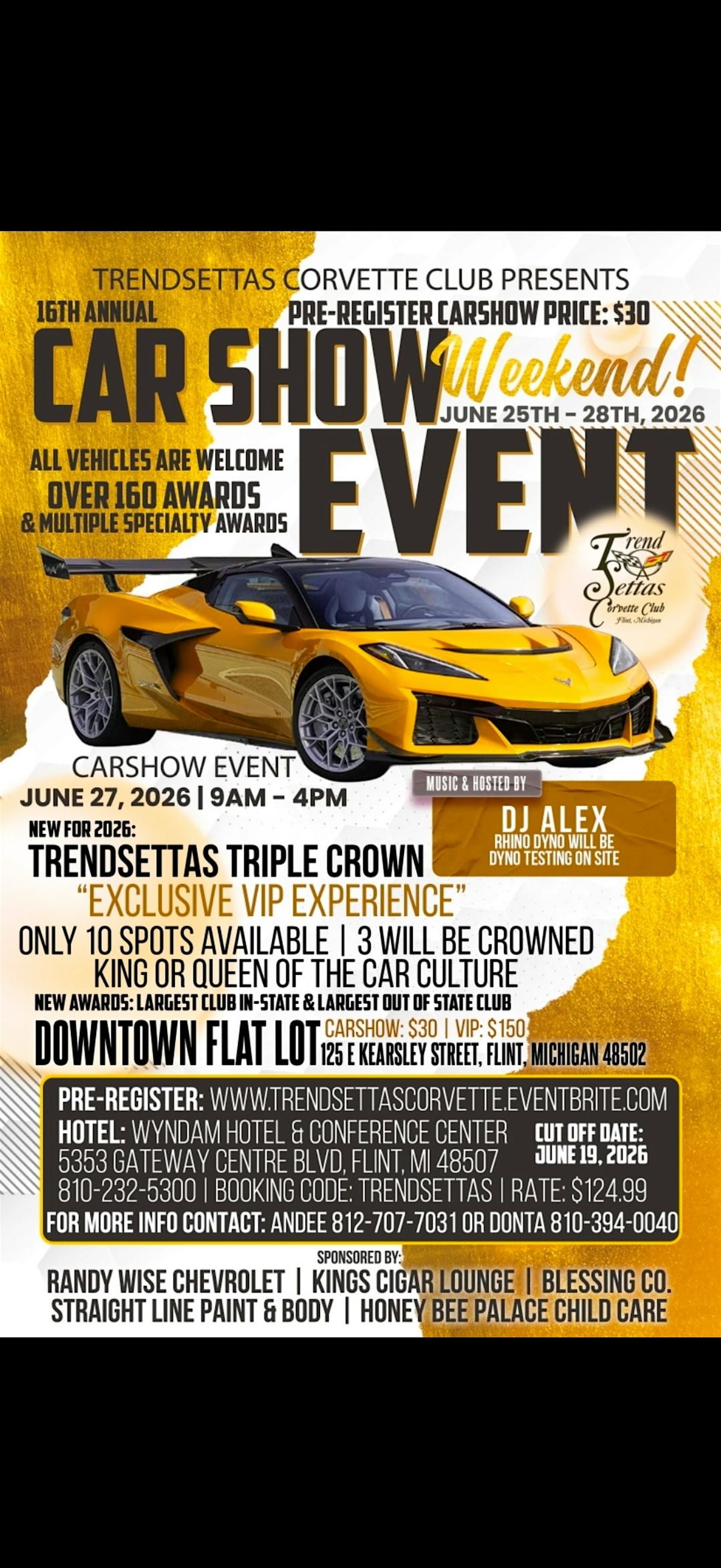Join the TrendSettas Corvette Club for our 16th Annual Car Show — one of the most anticipated automotive events in the region, celebrating 16 years of car culture, community, and craftsmanship.
